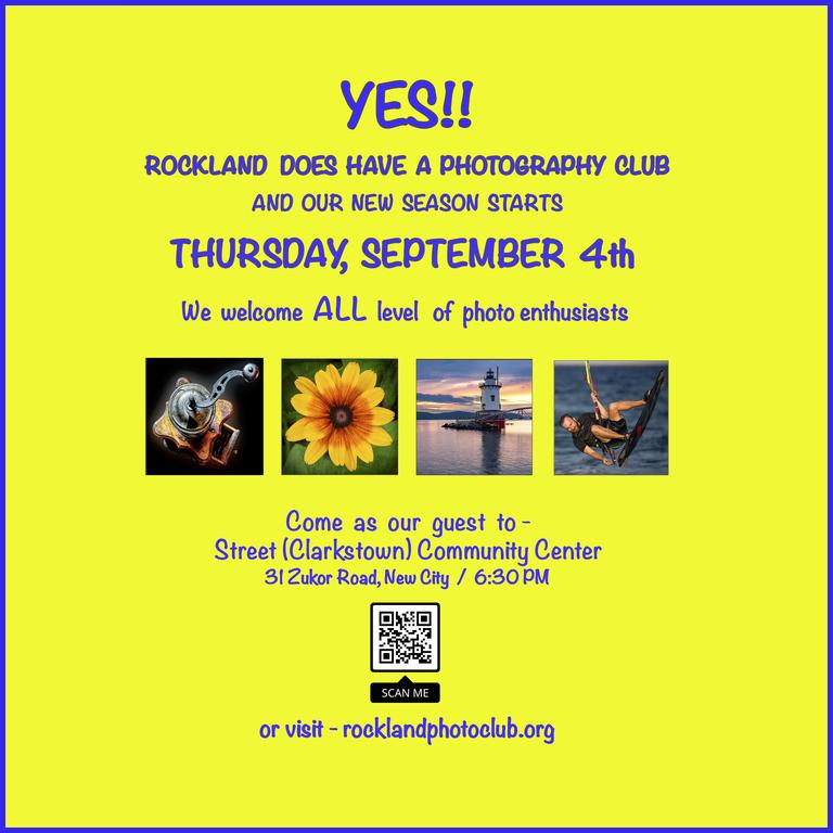 The Rockland Photography Club is an avid group of amateur photographers of all skill levels who meet 2 times monthly September through May.  See our calendar for specific dates.