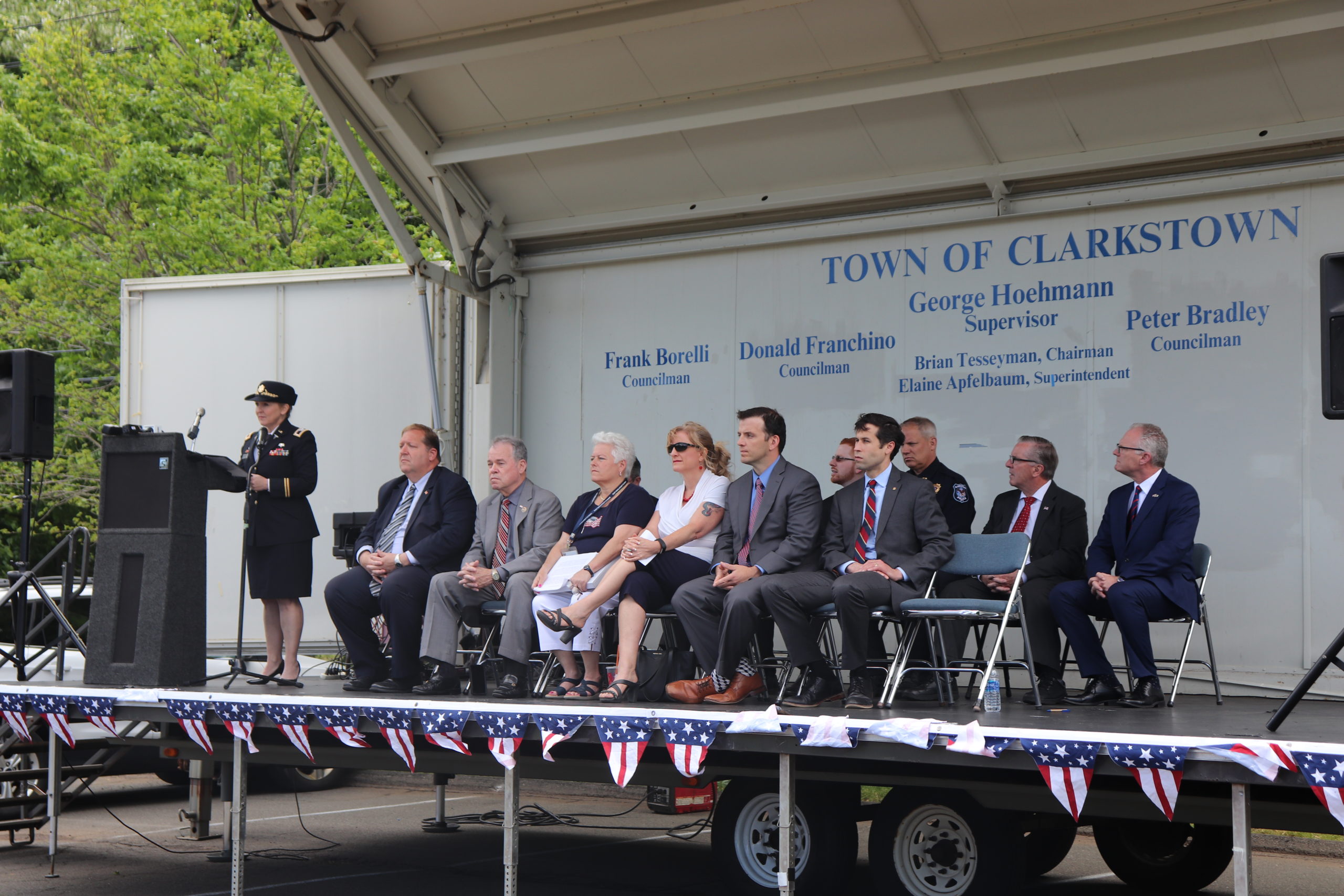 NEW CITY, NY – On Friday, May 24th, the Town of Clarkstown held its annual Memorial Day Ceremony. The ceremony was emceed by Veteran Sean Magee of Congers. This year the guest speaker was Congers resident, Col. Angela Woods, who is currently the Chief of the Health Services Support Team of the 7301st Medical Training Support Battalion at Joint Base McCuire, Dix, Lakehurst, NJ and the Chief Administrative Officer of Access: Supports for Living in Middletown, NY.