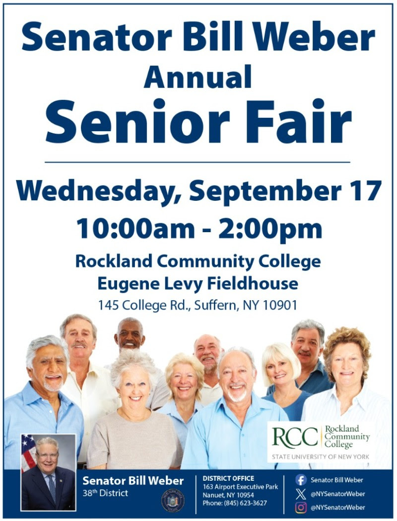Rockland County, NY — Senator Bill Weber will host his Annual Senior Fair on Wednesday, September 17, 2025, at Rockland Community College’s Fieldhouse in Suffern, bringing together over 150 vendors offering free services, resources, and information for local seniors — all under one roof.