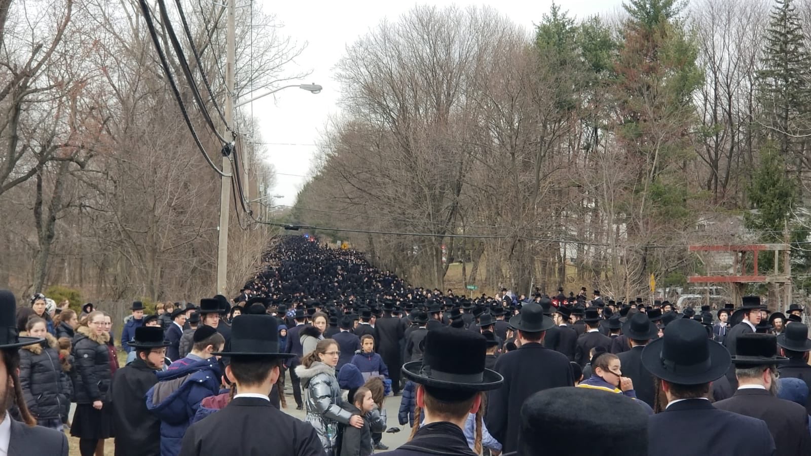 Thousands of people crowded streets in Monsey Tuesday for the funeral of a grand rabbi, Skulener Rebbe, Rabbi Yisroel Avrum Portugal.